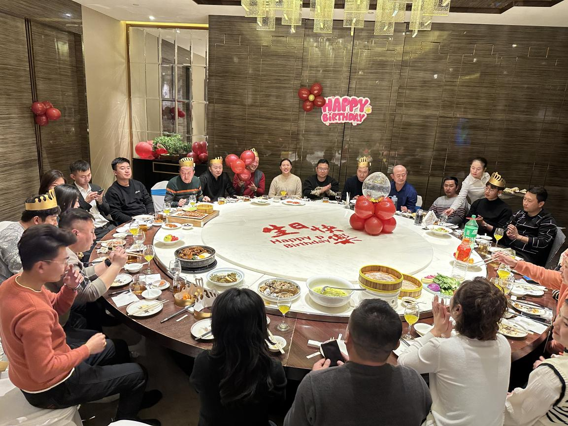 天色將晚,壽星們?cè)谘﹫?chǎng)夕陽(yáng)的送別下,前往立達(dá)深航國(guó)際酒店參加生日慶祝晚宴。生日蛋糕與美酒佳肴都已就緒,“家宴”的主人翁們歡聚此刻,讓我們共同舉杯、互相感恩、互道祝福、互訴衷腸,唱響熟悉的生日旋律,在愉快、溫馨的氛圍中為此次活動(dòng)劃上圓滿的句號(hào)。讓我們一起心系立達(dá),愛企如家;讓我們共同祝愿各位壽星生日快樂(lè),祝愿我們的華尊立達(dá)集團(tuán)興隆昌盛!