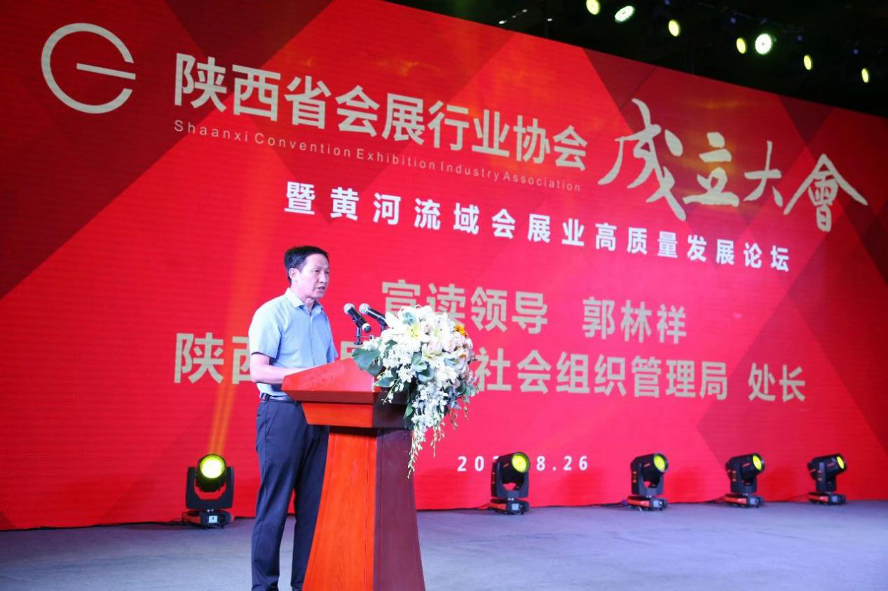 陜西省民政廳社會(huì)組織管理局郭林祥處長(zhǎng)宣讀 “陜西省會(huì)展行業(yè)協(xié)會(huì)”準(zhǔn)予成立的許可決定書